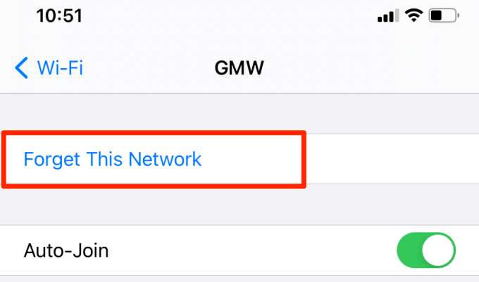 iPhoneでWi-Fiネットワークを忘れるには、Wi-Fi設定メニューを開き、Wi-Fiネットワークを選択して、このネットワークを忘れるをタップします。