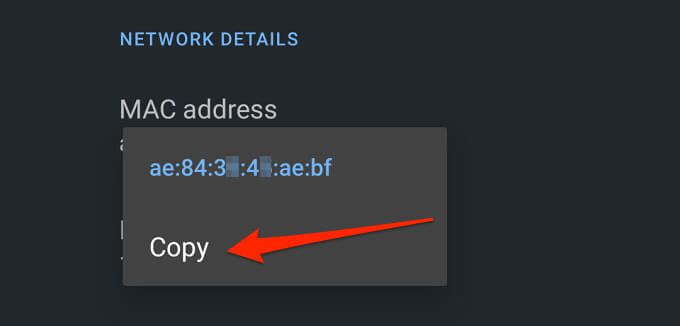 クイックヒント: MACアドレスを長押しして[コピー]をタップすると、デバイスのMACアドレスを簡単にコピーできます。