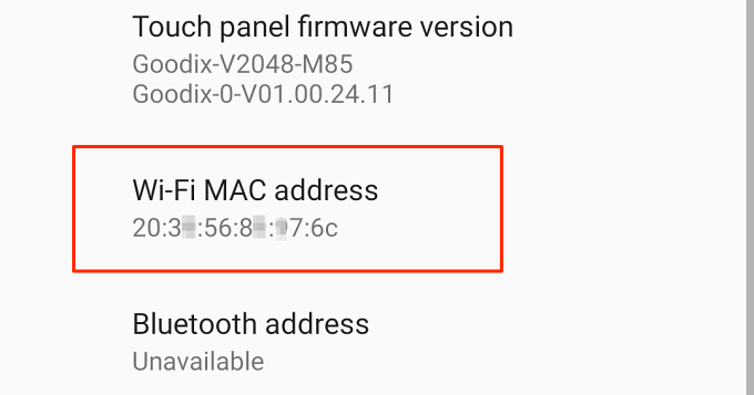 これらのセクションのいずれにもデバイスのMACアドレスが見つかりませんか?ルーターの取扱説明書を参照するか、アプリ開発者に連絡してください。