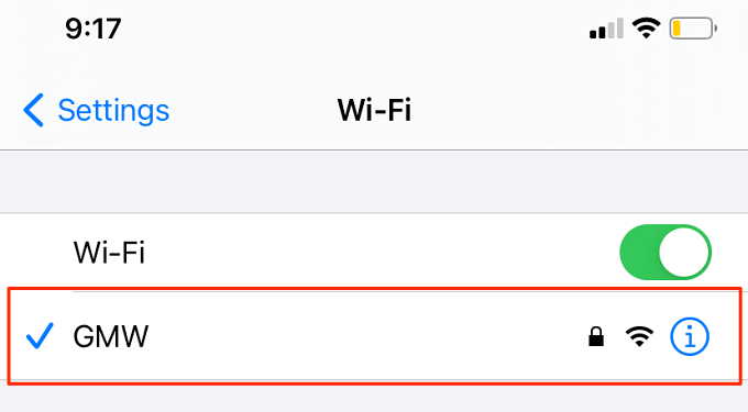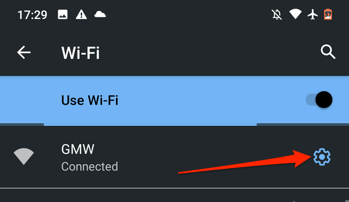 2。アクティブなWi-Fiネットワークを選択するか、ネットワーク名の横にある歯車のアイコンをタップします。