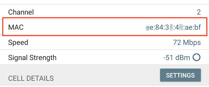 Fing は、GooglePlayストアで入手できる人気のある無料のネットワークアナライザです。デバイスにFingをインストールし、[デバイス]タブに移動してAndroidデバイスを選択し、[ネットワークの詳細]セクションまでスクロールしてデバイスのMACアドレスを確認します。