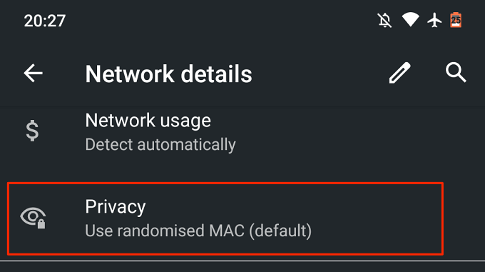 AndroidでMACアドレスのランダム化を無効にするには、Wi-Fiネットワークに参加し、通知センターを開いて、Wi-Fiアイコンを長押しします。以下の手順に進んで、Androidデバイスでランダム化されたMACアドレスを無効にします。