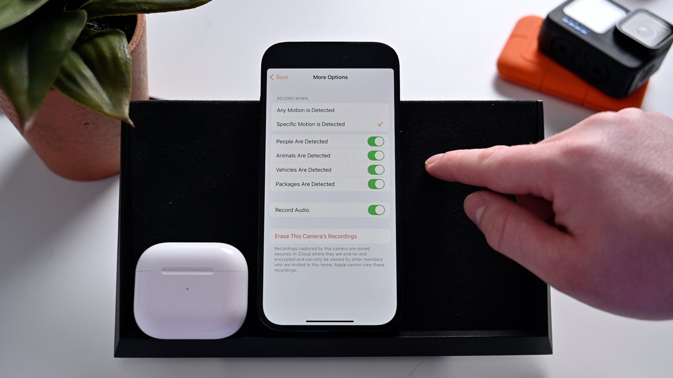 さらに、記録はあらゆるモーションまたは特定のタイプの動きに対してのみトリガーできます。 Apple では、人、動物、乗り物、荷物の記録のオンとオフを切り替えることができます。
