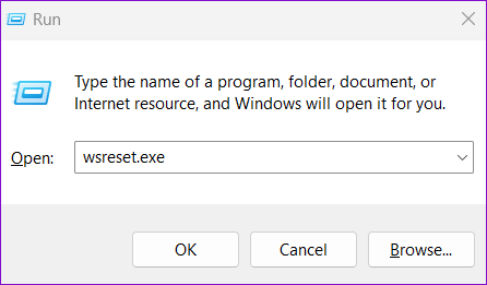 ステップ 2: 次のように入力します。ボックス内に wsreset.exe を入力し、Enter キーを押します。