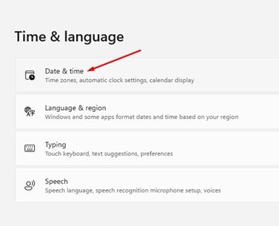 ステップ3。右側のペインで、[‘日付と時刻’]オプションをクリックします。