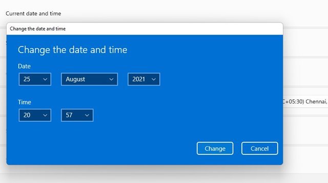 ステップ6。次のウィンドウで日付と時刻を設定し、[変更‘ボタン。