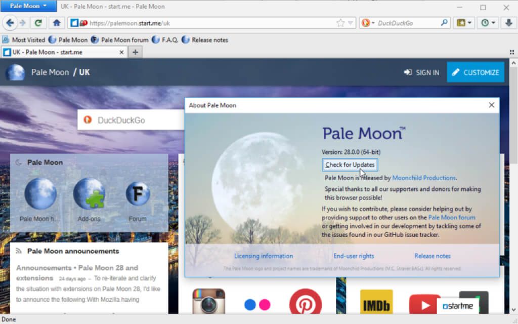設計上、アプリケーションは古いMozillaFirefoxに似ています。以前のバージョンが気に入った場合、これは悪いことではありません。セキュリティの面では、実際にはFirefoxよりも優れています。 Pale Moonは、ブラウザ拡張機能をインストールしなくても、スパイウェアと広告を自動的にブロックします。これにより、セキュリティを重視したLinuxオペレーティングシステムに最適です。