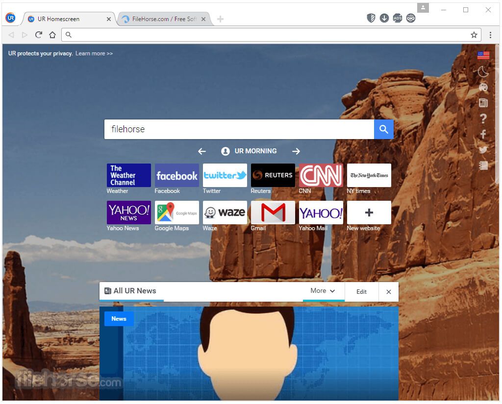 URブラウザは、しかし、それを実現することができます。これは、Windows 7以降(Mac X 10.9も同様)で動作するChromiumエンジンをベースにした高速で軽量のブラウザです。