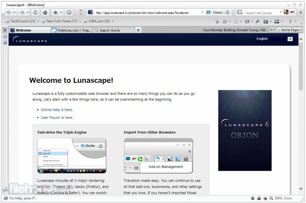 ご存知かもしれませんが、Webブラウザはコア「エンジン」で実行されます。 Internet ExplorerはTridentを使用し、Mozilla FirefoxはGecko上に構築されており、AppleのSafariはWebKitを利用しています。 Lunascapeは、3つすべてを使用するという点で独特です。