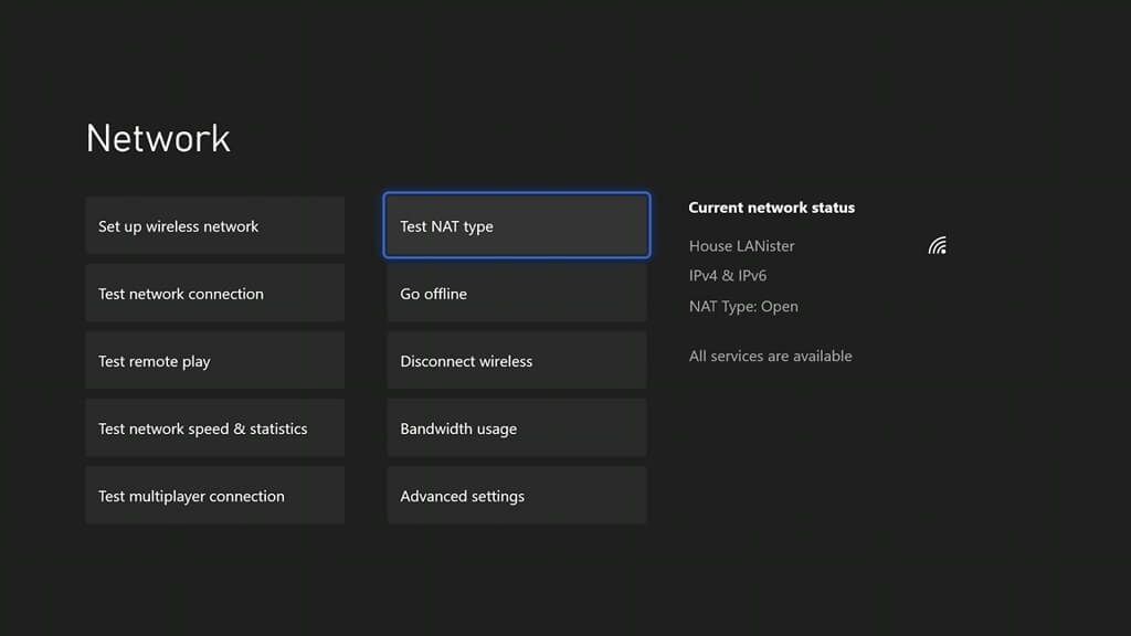 設定> 一般> ネットワーク設定を開きます。 横を見ることができますNATタイプを確認するには、現在のネットワークステータスに設定します。これが表示されない場合は、テストNATタイプを選択します。