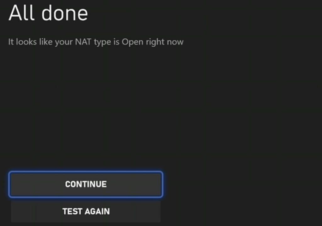 接続を確認するために1分まで。完了すると、NATタイプが表示されます。