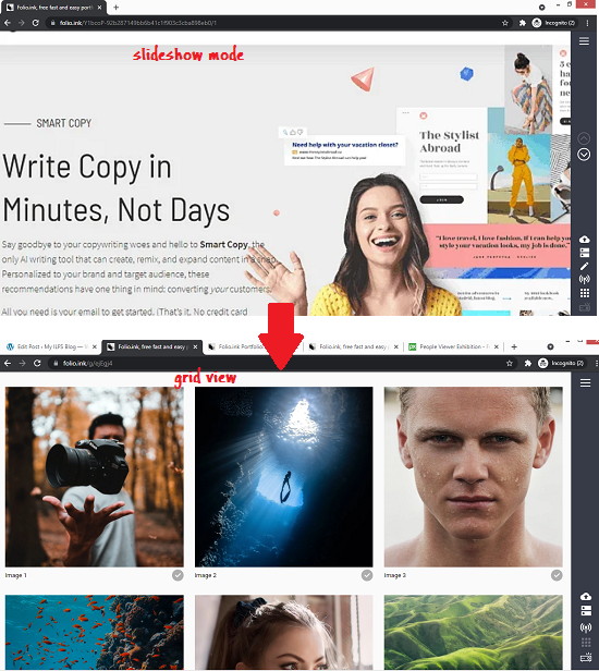 このようにして、この画像共有Webサイトを使用して、画像や写真をホストおよび共有できます。基本的に、自分の作品を紹介したいグラフィックデザイナーにとっては最高です。上で説明した作業方法を使用して、Folio Webサイトで複数のポートフォリオを作成し、それらを好きな人と共有できます。