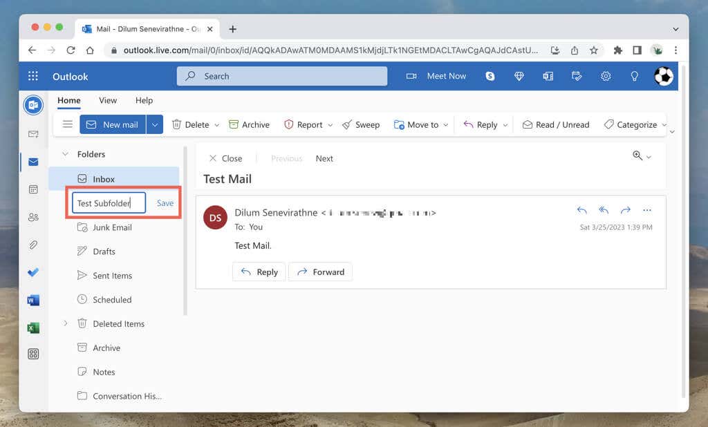 Slik oppretter du en undermappe i Microsoft Outlook: