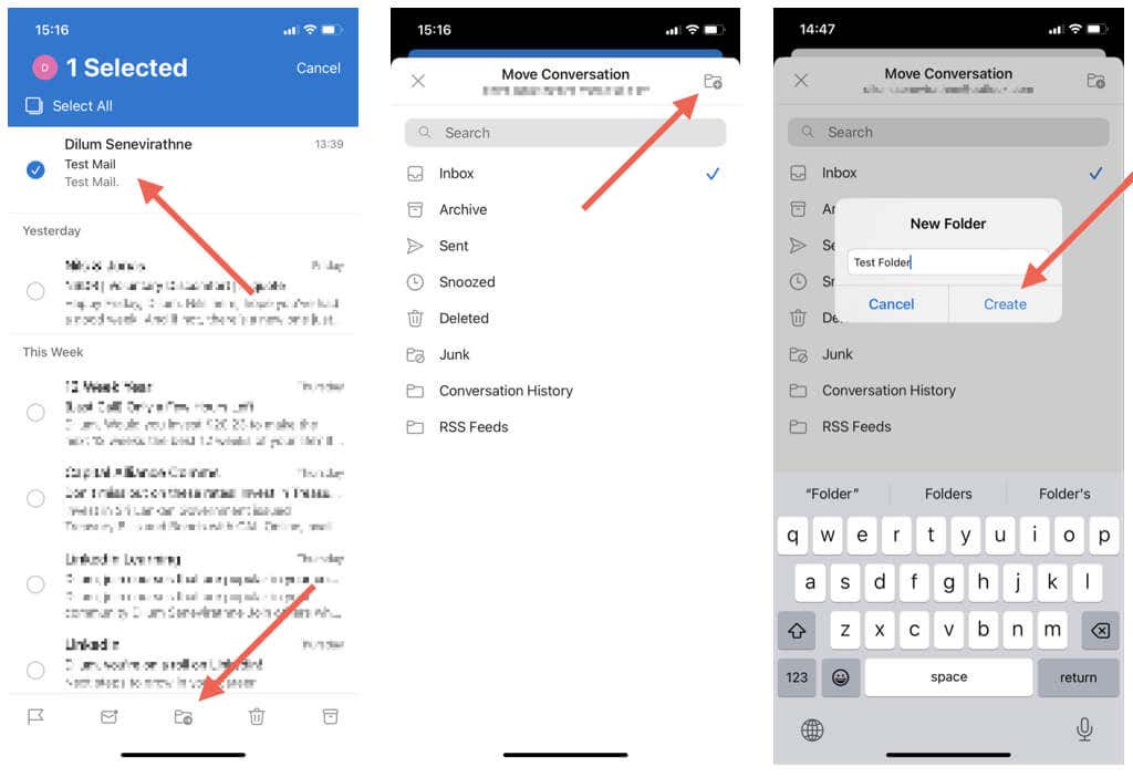 Å lage nye mapper for e-postkontoer i Microsoft Outlook for iPhone og Android kan være litt forvirrende siden appen ikke tilbyr en enkel metode. I stedet må du: