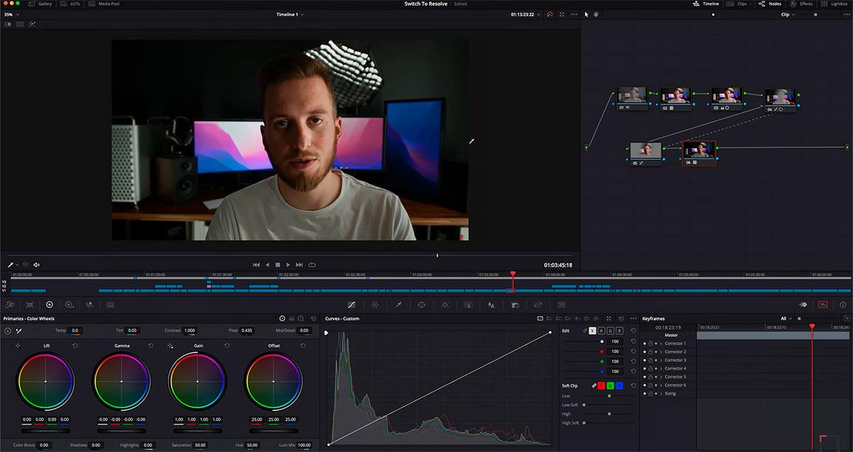 Are controale robuste ale cronologiei pentru mixarea audio și video. Cu toate acestea, oricât de convenabil ar părea, acest software nu este conceput pentru începători, iar unele cunoștințe anterioare despre producția video ar fi de mare ajutor. Lightworks necesită, de asemenea, crearea unui cont înainte de a-l lansa.