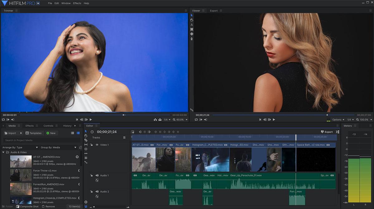 Dacă doriți să vă condimentezi videoclipurile cu efecte vizuale de top, apoi HitFilm Express este o alegere bună. Este printre cele mai bune programe de editare a filmelor pentru Windows 10 în ceea ce privește arsenalul VFX disponibil. Instrumente mai bine bazate, cum ar fi ajustările de culoare, efectele de tastare și sincronizarea sunetului, fac, de asemenea, parte din pachet.