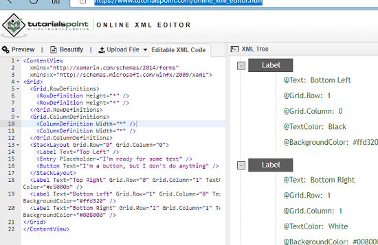 Bir tarafta XAML kodunu yazarsınız ve diğer tarafta önizleme oluşturur. Bazı mobil veya masaüstü uygulamaları için kullanıcı arayüzü oluşturuyorsanız, onu kullanabilirsiniz. Aklınıza gelebilecek tüm ana etiket türlerini destekler.