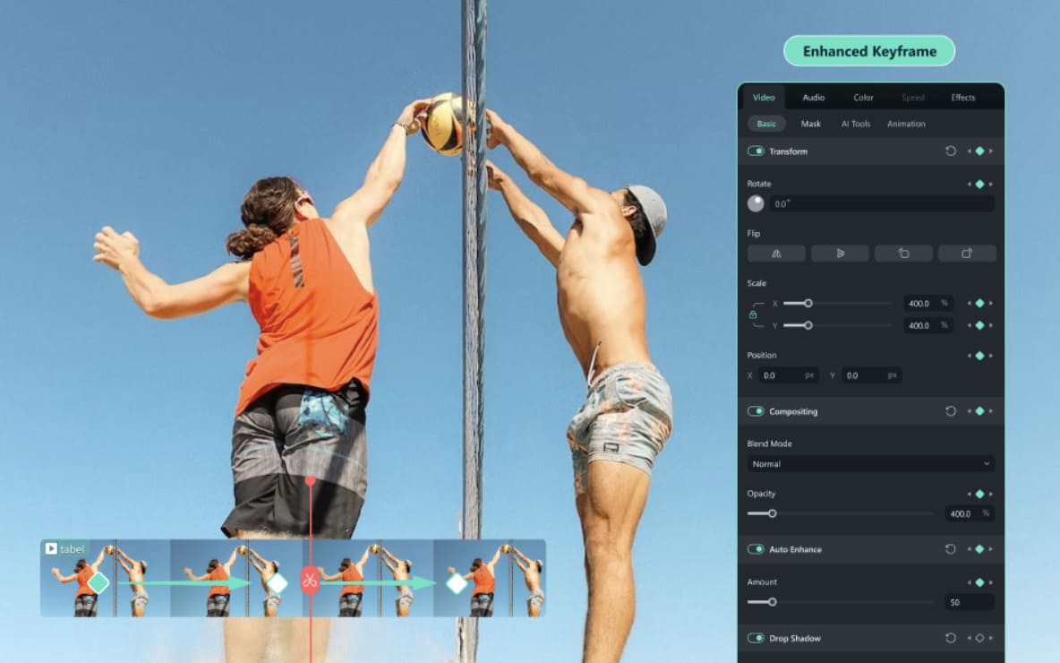 Kullanıcılar, Ekstra renk düzeltme ve filtre seçenekleriyle Filmora 12’deki Gelişmiş Anahtar Kare bölümündeki çeşitli düzenleme parametrelerini kullanabilir. Ayrıca, klipteki öğelerin ölçeği, döndürme ve konumlandırma gibi birden çok standart video faktörünü kolayca değiştirebilirsiniz.