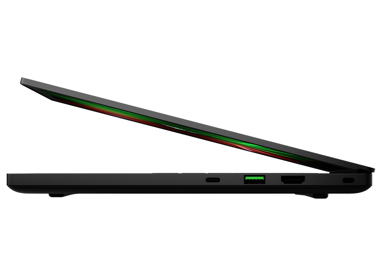 Aan weerszijden van het toetsenbord zijn bloeiende luidsprekers die kunnen worden afgesteld via ingebouwde THX Spatial Audio-technologie voor gaming, films of muziek. Aan de zijkanten van de Blade 14 bevindt zich een overvloed aan poorten, waaronder twee USB 3.2 Gen 2 Type-C-poorten met stroomtoevoer voor opladen wanneer in een binding, twee USB 3.2 Gen 2 Type-A-poorten voor het aansluiten van oudere items, HDMI 2.1 voor eenvoudig aansluiten op mediasets in de vergaderruimte en een 3,5 mm-aansluiting voor het luisteren naar meeslepende 3D-audio met THX Spatial Audio.