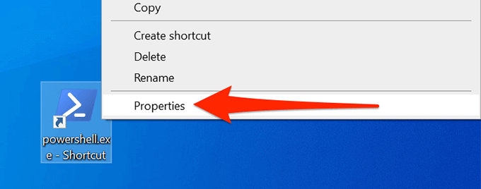 - Klik met de rechtermuisknop op de snelkoppeling PowerShell op uw bureaublad en selecteer Eigenschappen.
