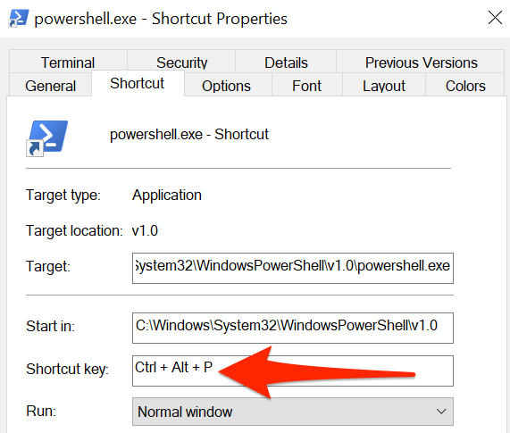 U kunt een snelkoppeling toewijzen aan het PowerShell-bureaublad zodat de tool met een toetsaanslag wordt geopend.
