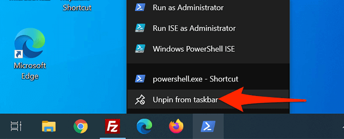 - Klik met de rechtermuisknop op de snelkoppeling PowerShell op uw bureaublad en selecteer Vastzetten op taakbalk.