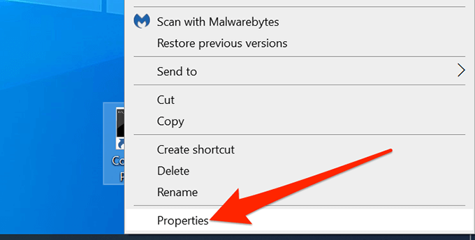- Klik met de rechtermuisknop op de snelkoppeling Opdrachtprompt op uw bureaublad en selecteer Eigenschappen.