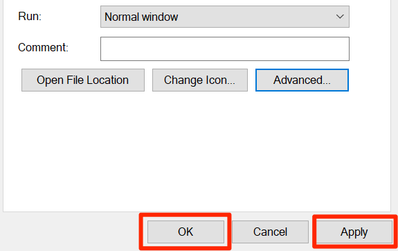 - Ga terug naar het venster Eigenschappen, selecteer Toepassen en selecteer vervolgens OK onderaan.