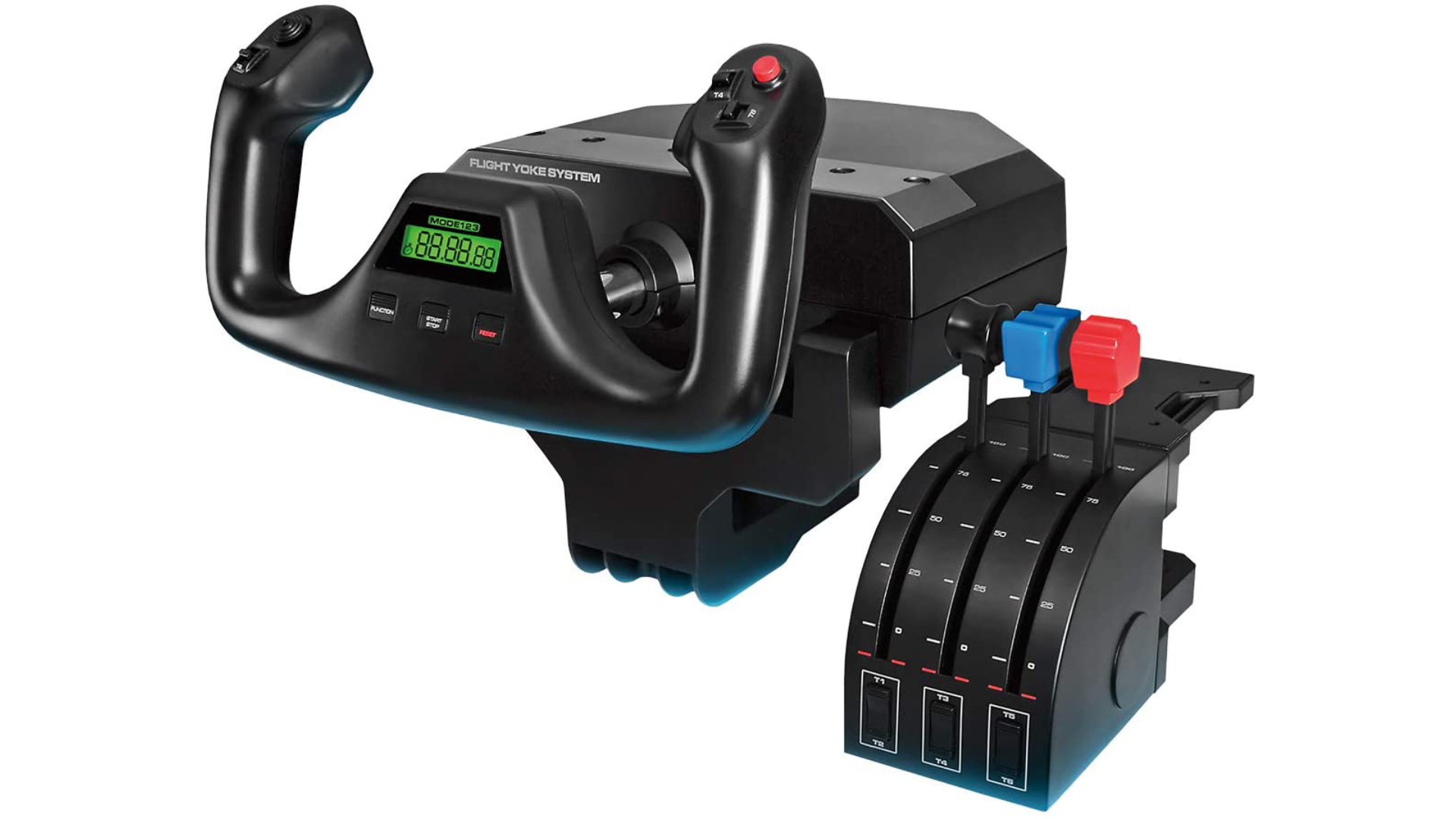 Het Logitech Saitek Pro-vluchtsysteem is een geweldige optie voor Microsoft Flight Simulator, bestaande uit een juk van volledige grootte , samen met een triple-throttle-kwadrant, om de cockpit van veel grote straalvliegtuigen te repliceren.