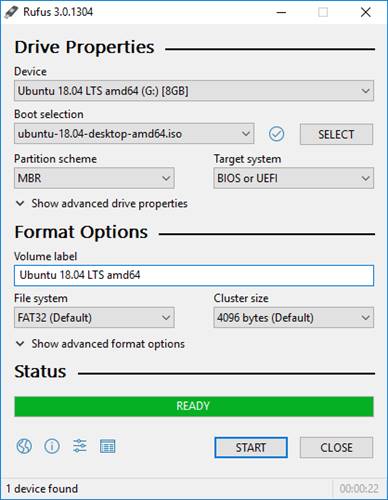 Selecteer vervolgens het ISO-bestand van het besturingssysteem dat u op uw USB-station wilt flashen. Als u klaar bent, klikt u gewoon op de knop’Start‘.