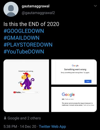 IST 17:25 pm: het lijkt erop dat YouTube en de meeste andere Google-services over de hele wereld. Gebruikers zijn massaal naar Twitter gekomen om het nieuws te delen met de hashtag #GoogleDown onder anderen.