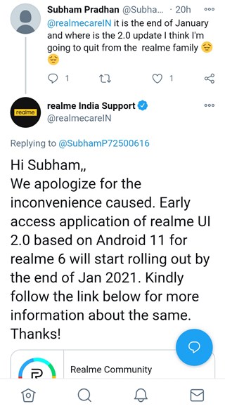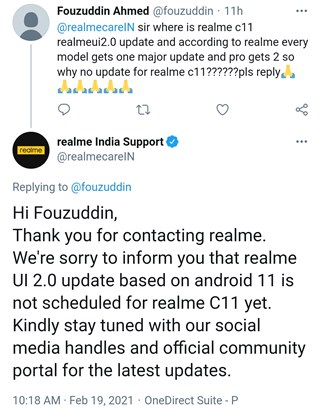 IST 01:20 pm: Realme customer support is once again spotted confusing users by baselessly claiming that Android 11 for Realme 2 Pro is under development.