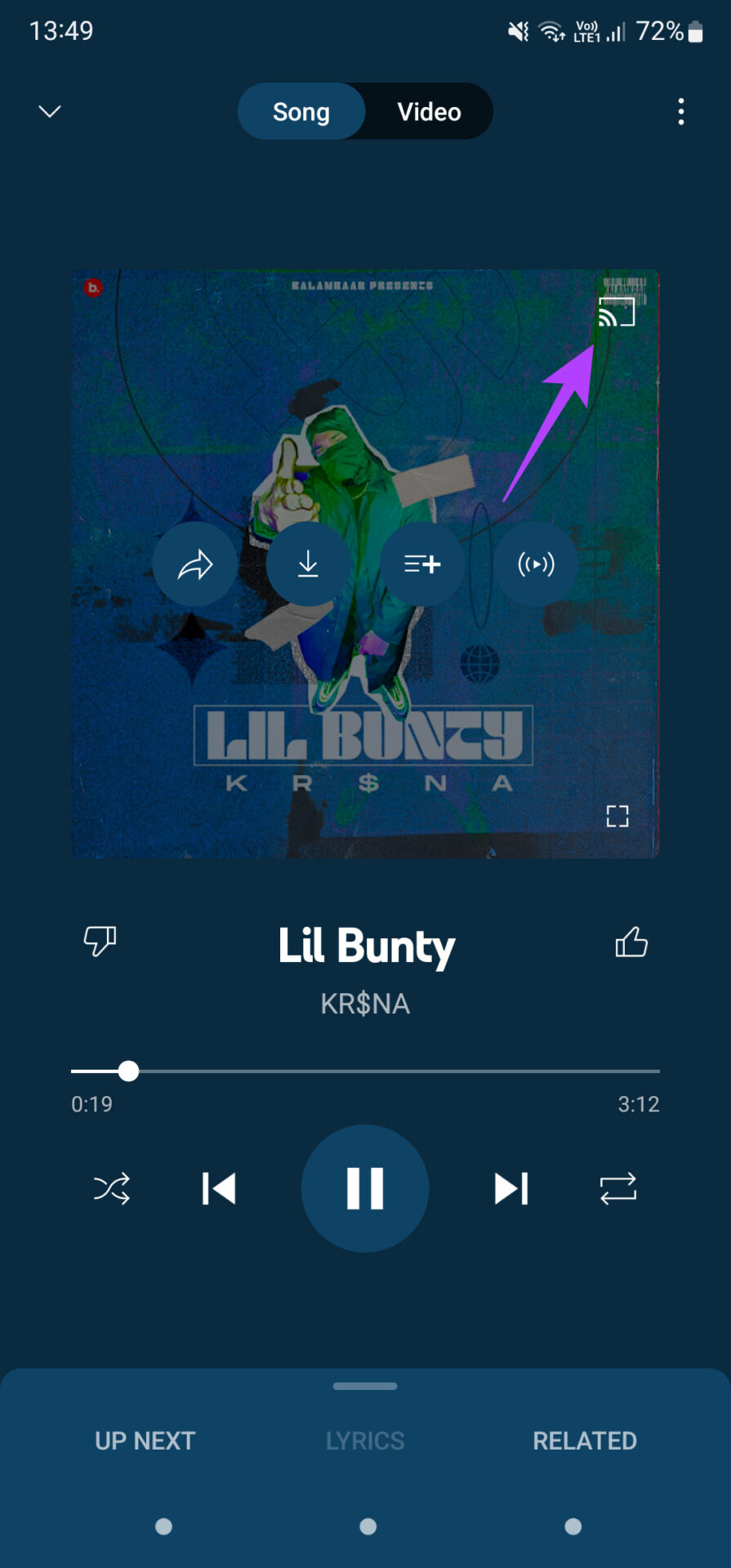 Stap 3: Tik nu op het cast-pictogram om de lijst met beschikbare apparaten weer te geven.