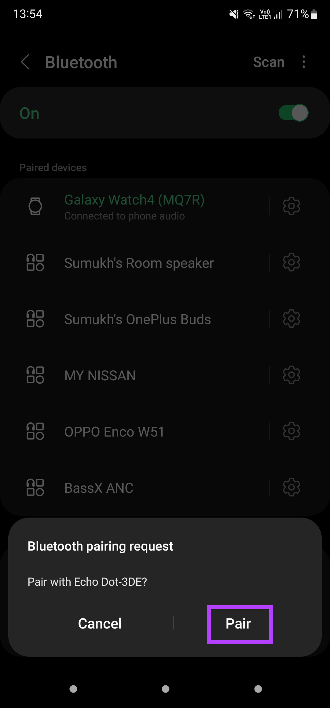 Stap 1: Als je in de buurt van je Amazon Echo-speaker bent, zeg je’Alexa, Bluetooth inschakelen’om het koppelingsproces te starten.