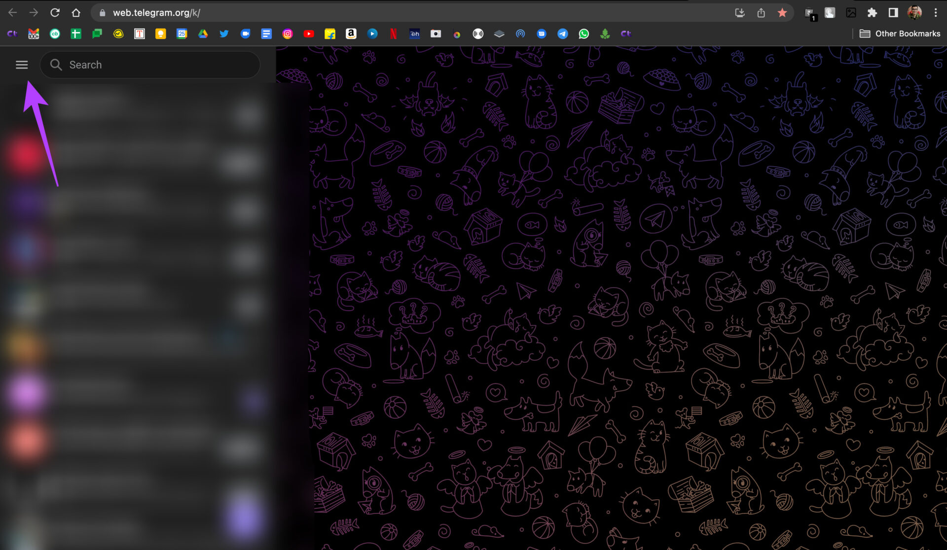 Stap 1: Open Telegram Web op uw computer en klik op het hamburgermenu in het linkerdeelvenster.