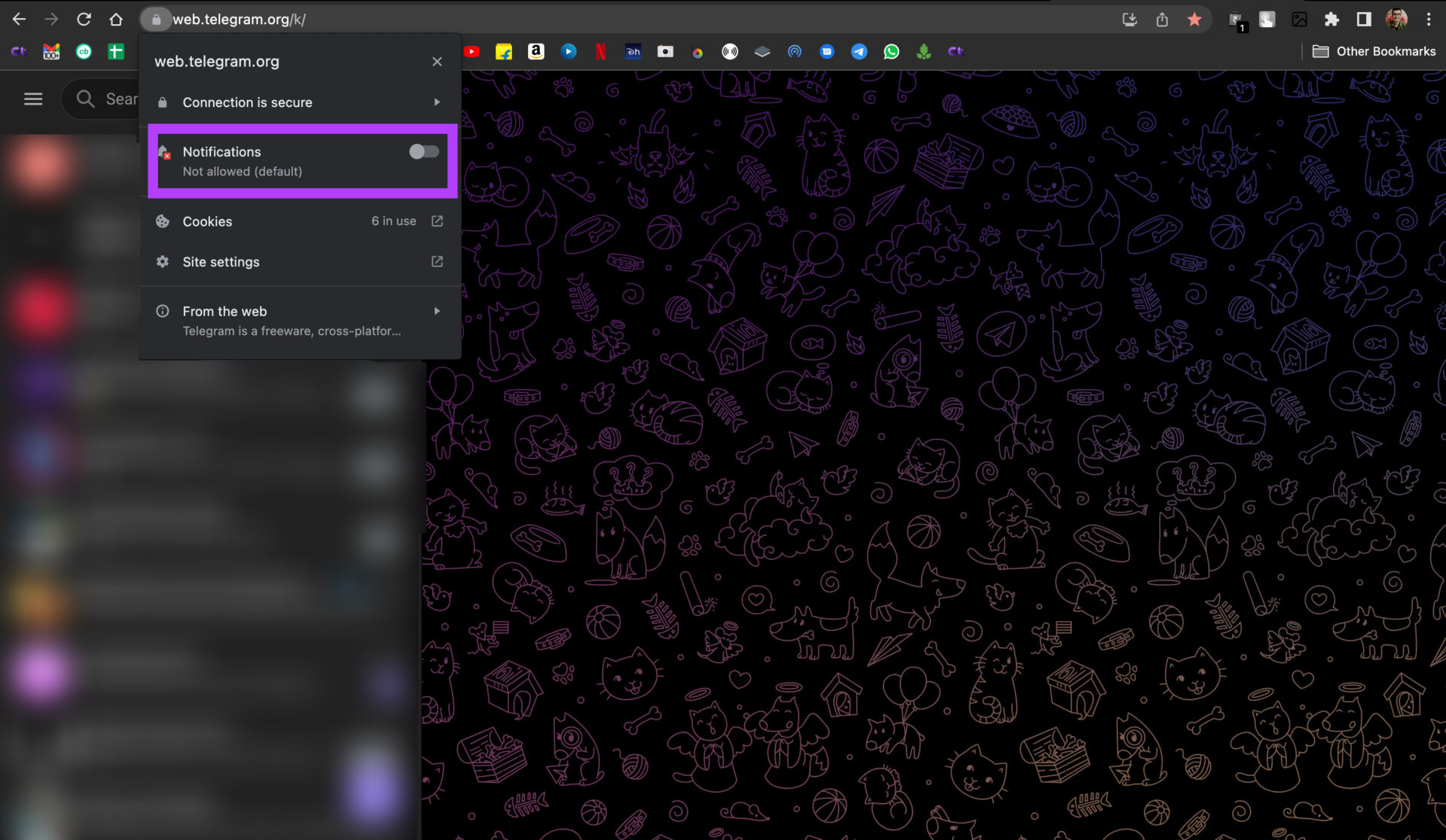 Zelfs als u Telegram Web-meldingen hebt ingeschakeld door de vorige stap te volgen, zal de web-app de meldingen niet leveren als u de melding van uw browser niet heeft gewijzigd instellingen. Hier leest u hoe u Telegram-webmeldingen in uw webbrowser kunt inschakelen.