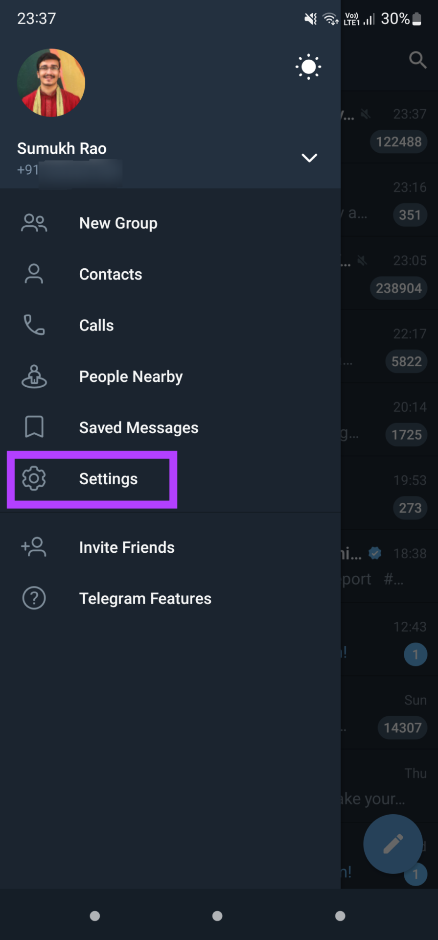 Stap 1: Open de Telegram-app op je smartphone en tik op het hamburgermenu in de linkerbovenhoek.