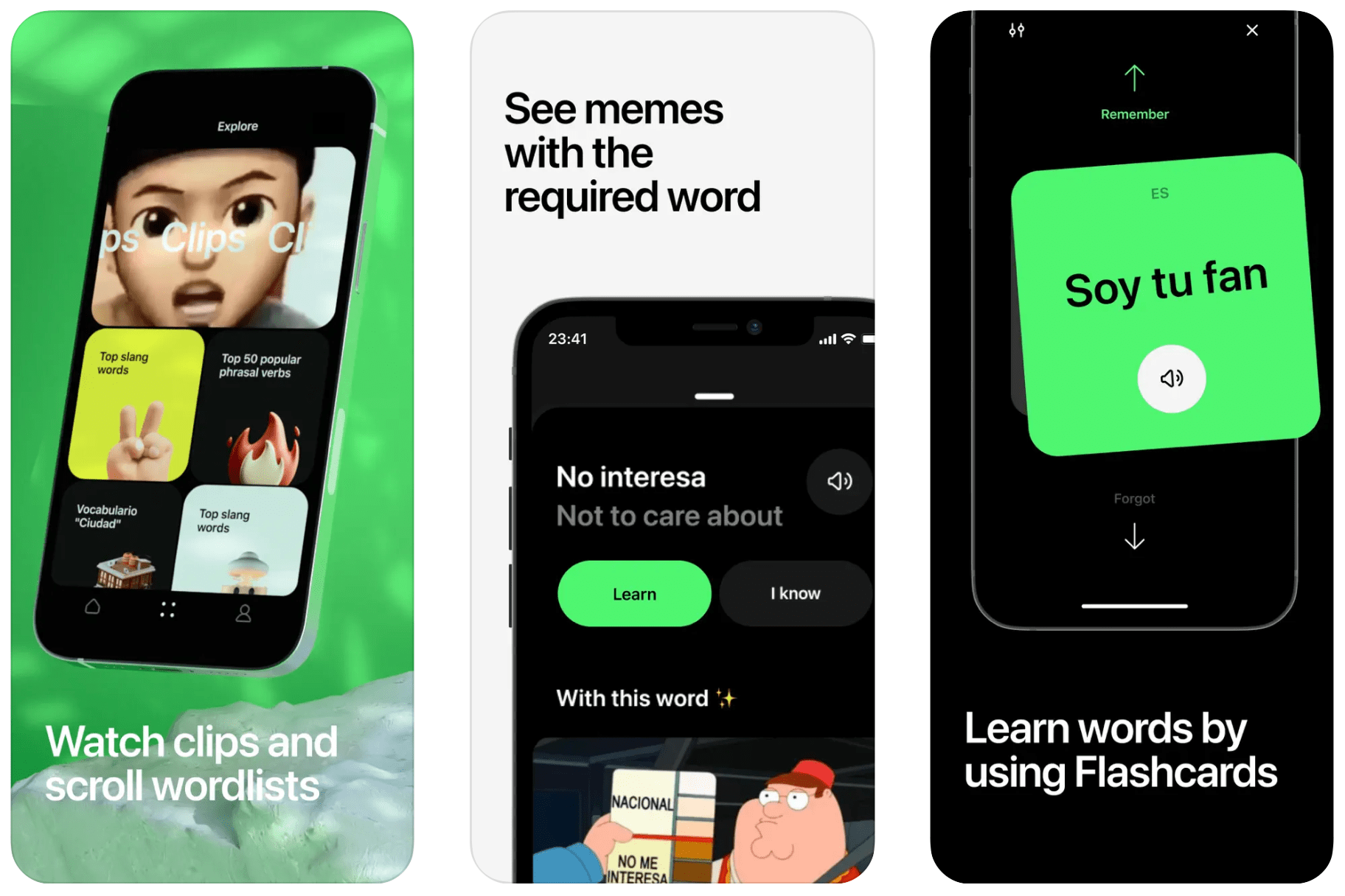 Jeg tror vi har nådd toppen Gen Z med memo. Det er en app som tar sikte på å hjelpe deg med å lære nye språk ved å se på… memes. Ideen er at memer fremkaller følelser (glad, trist, sint, osv.), og dermed skaper stabile kjedeassosiasjoner i minnet ditt. Så i stedet for å måtte høre på kjedelige forelesninger eller øve på gamle skolefraser som «Jeg drikker melk», kan du bla gjennom populære slangord og fraser som «I stan you.»