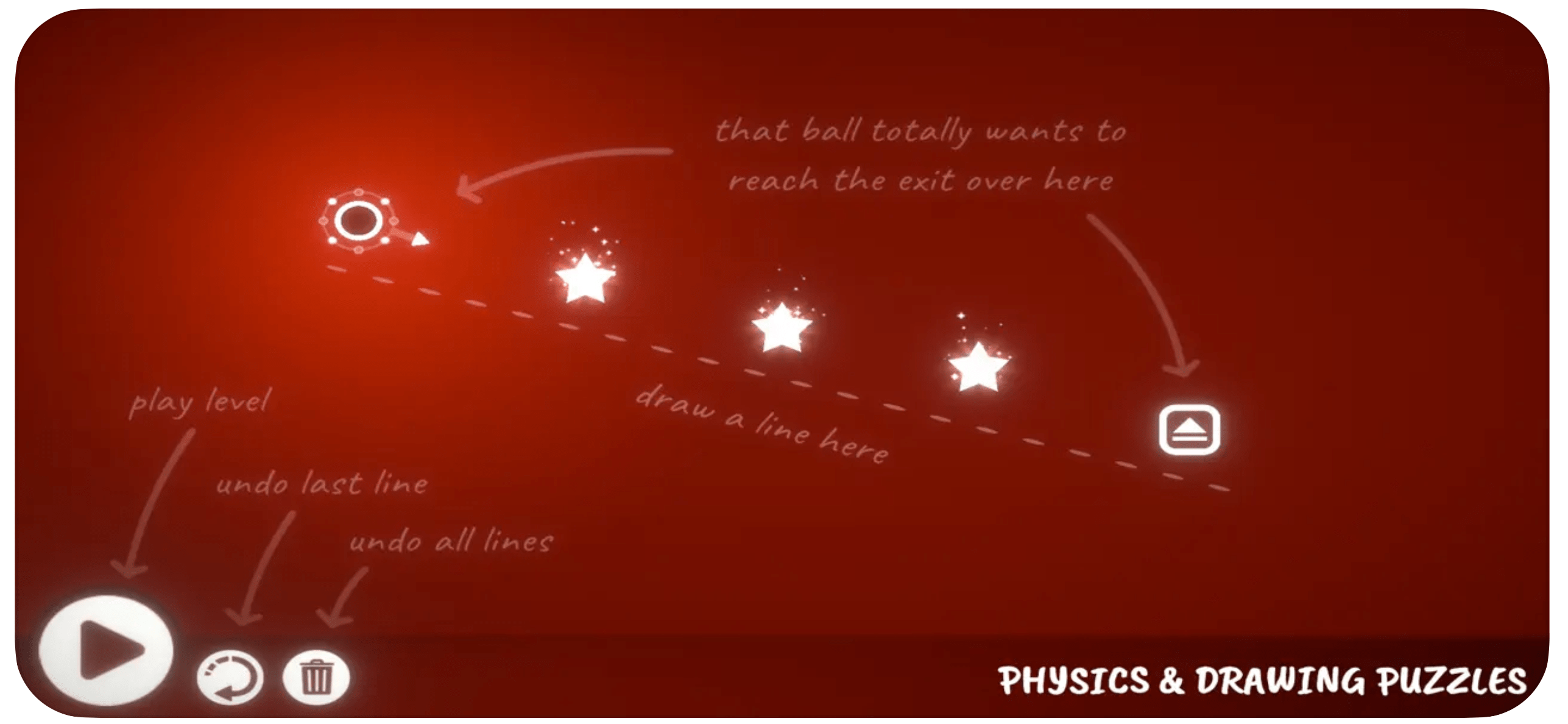 Test hjernekraften din i dette stilige og avslappende fysikkpuslespillet som tilbyr over 100 unike nivåer. Reglene er enkle: Tegn linjer og former for å hjelpe ballen med å nå utgangen av hvert nivå for å gå videre til neste. Du vil møte en rekke feller, farer og annen mekanikk underveis. Det er en slags flipperspill møter puslespill møter fysikksimulator.