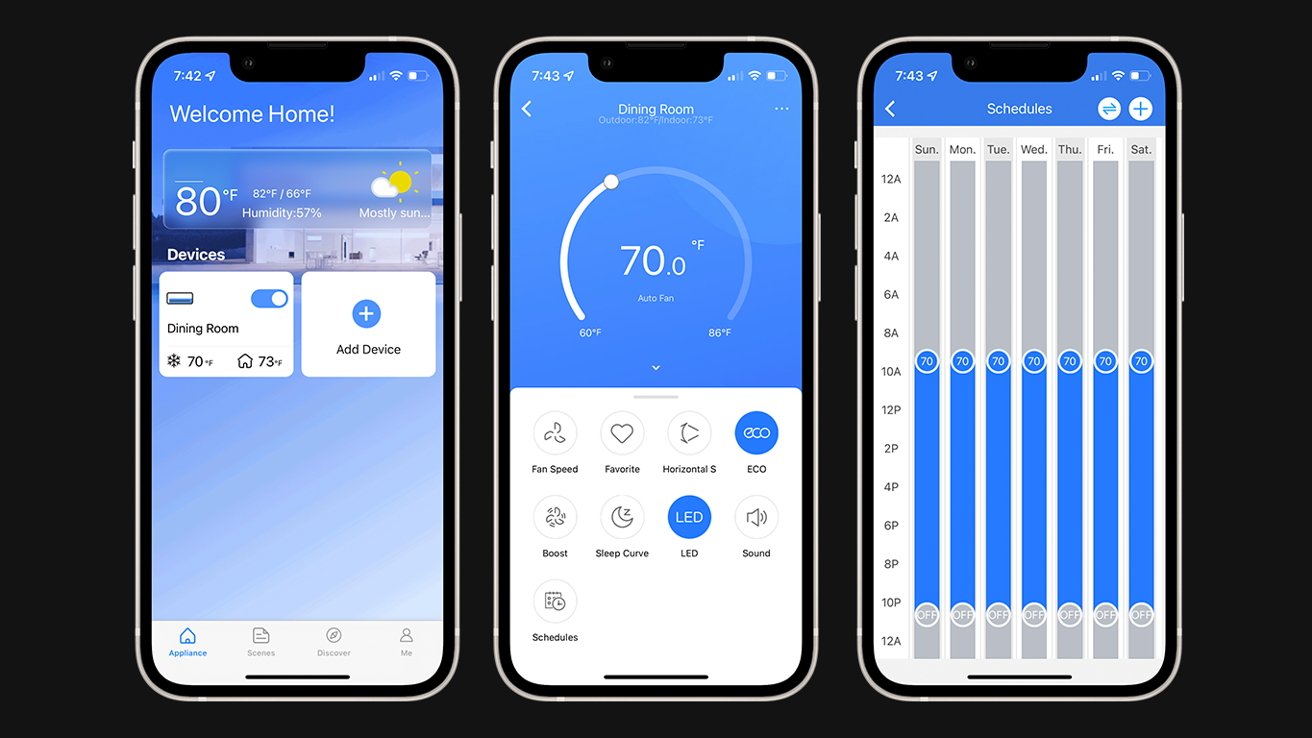 U kunt de instellingen van uw airconditioner rechtstreeks vanuit de app wijzigen, inclusief ventilatorsnelheid, temperatuurinstellingen, in welke modus u zich bevindt, de richting van de ventilatieopening en meer.