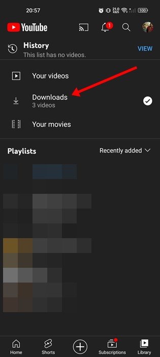 3. Tik op de bibliotheekpagina op de optie Downloads.