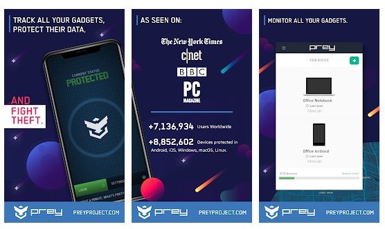 Met de app kun je controlezones op de kaart maken om apparaatbewegingen erin en eruit te waarschuwen. Afgezien daarvan staat Prey Anti Theft bekend om zijn nauwkeurige GPS-geolocatie-tagging.