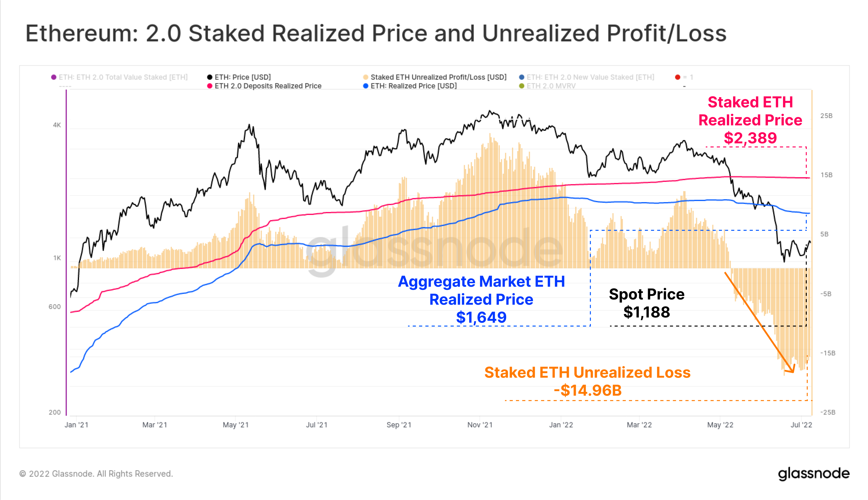 Volgens een speciale rapport uitgegeven door Glassnode en CoinMarketCap, de Ethereum die vastzit in het 2.0-contract lijdt momenteel zware verliezen.
