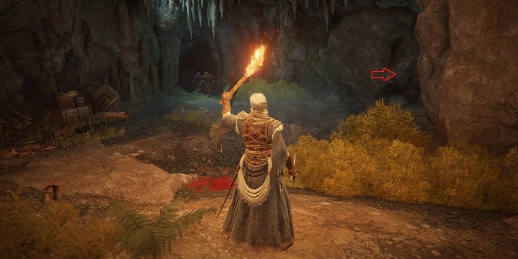 Wees voorzichtig van de belkettingen die op de vloer zijn opgesteld. Als je ze tegenkomt, zullen alle struikrovers tegelijk aggro zijn.Vanuit de hoofdkamer, draai rechts en volg de doorgang naar de baasmist.Nadat je de baasmist bent binnengegaan , vind je een leeg kampvuur en een ongeopende kist.
