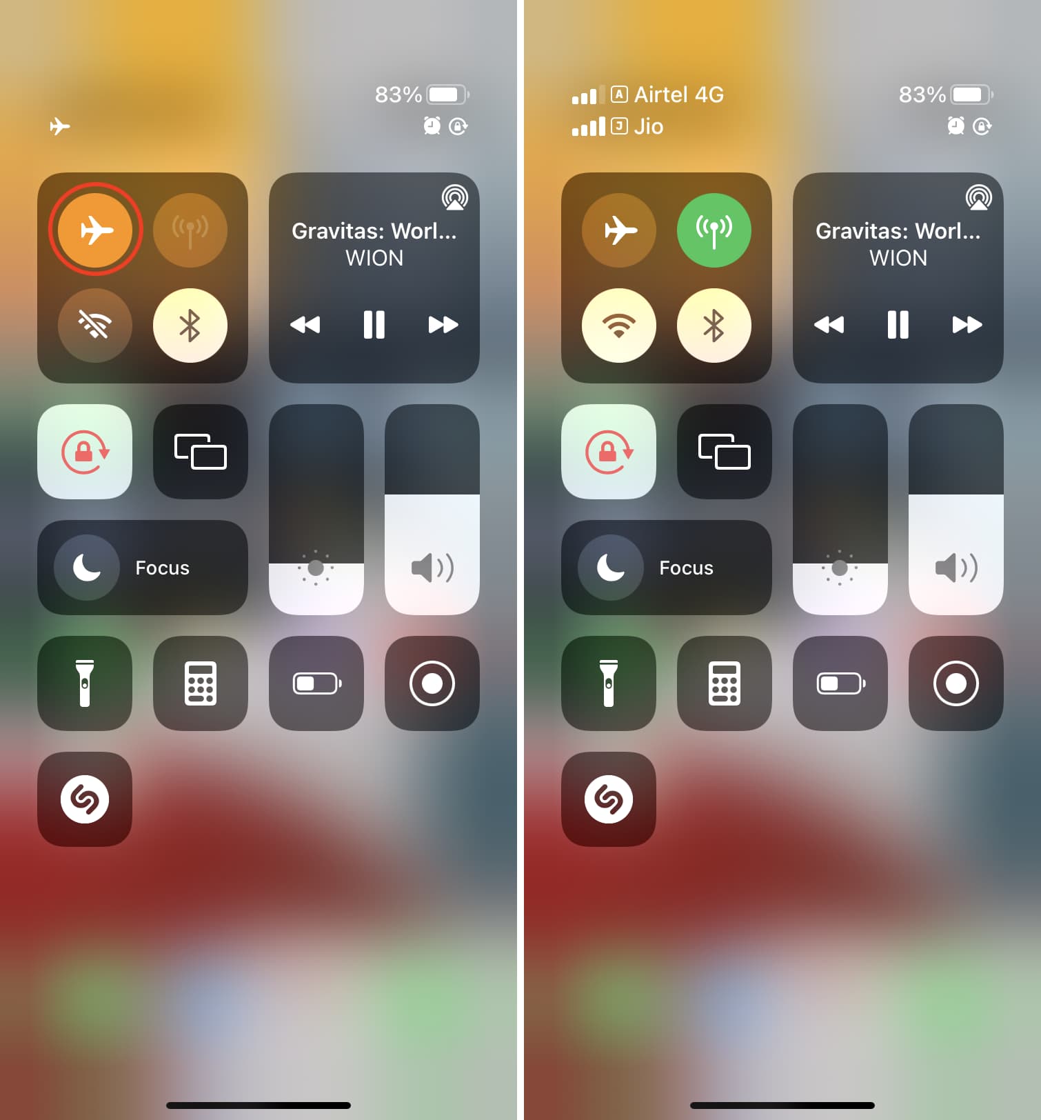 Ga eerst naar iPhone-instellingen of het Control Center en schakel de vliegtuigmodus in. Schakel het na ongeveer 15 seconden uit. Gedurende een paar seconden ziet u Zoeken, waar u meestal de celbalken ziet. Als u de naam van uw provider in het Control Center ziet, betekent dit dat de simkaart werkt. En als er Geen service staat, betekent dit dat de simkaart werkt, maar dat er geen mobiele dekking is. Zorg er in dit geval voor dat u zich in een gebied met mobiele dekking bevindt (door uw provider).