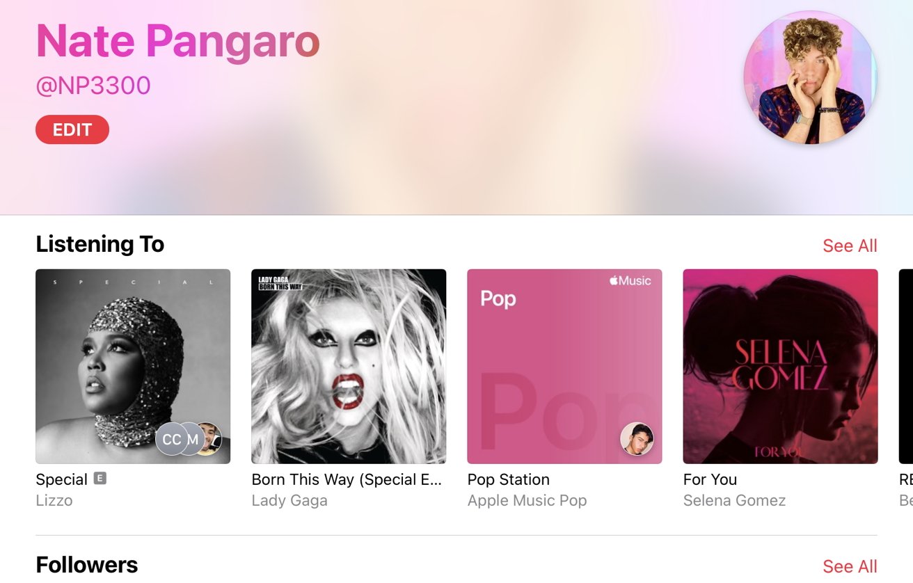 Door profielen naar Apple Music te brengen, voelt de streamingdienst meer als een andere gemeenschap dan onafhankelijke en afgeschermde bibliotheken die niet met elkaar kunnen communiceren. Met de applicatie kun je jezelf laten zien via je profielfoto die naadloos overgaat in de doorschijnende achtergrond erachter, en ook je huidige en vroegere muzieksmaak onthullen door de huidige muziek waarnaar wordt geluisterd en afspeellijsten die je besluit te delen.