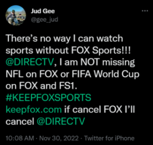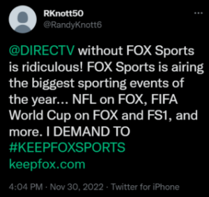 Dit heeft er uiteindelijk toe geleid dat #KEEPFOXSPORTS trending is op Twitter. Bovendien vinden kijkers dat de afwezigheid van Fox Sports op DirecTV belachelijk is, aangezien het bedoeld was om de grootste sportevenementen van het jaar uit te zenden.