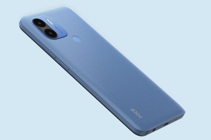 De Poco C51 heeft een leerachtig getextureerd achterpaneel en lijkt sterk op de Redmi A1+. Het krijgt ook een vierkante camerabult en een vingerafdruklezer. De telefoon is ook kras-en spatbestendig.