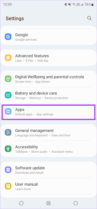 Stap 1: Open de app Instellingen op uw Android-apparaat. Navigeer naar het gedeelte Apps.