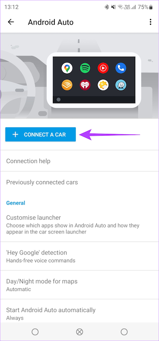 Stap 3: Je wordt nu naar de Android Auto-instellingen geleid. Tik op Eerder verbonden auto’s.